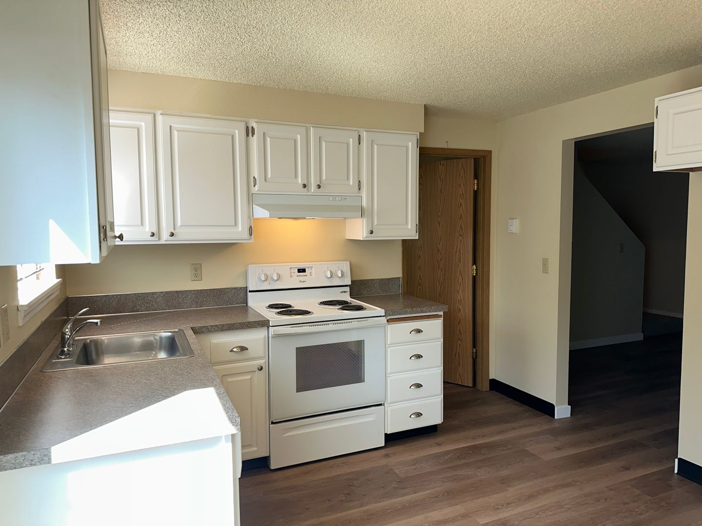 The primary bedroom offers a closet with a built-in organizer for added functionality, and a private fenced patio allows for serene outdoor relaxation. With great residents as neighbors, you'll feel right at home in this inviting community. Plus, water, sewer, and garbage are all included for added convenience. Situated on bus route 33 and near groceries and a movie theater, this townhome offers both accessibility and charm.